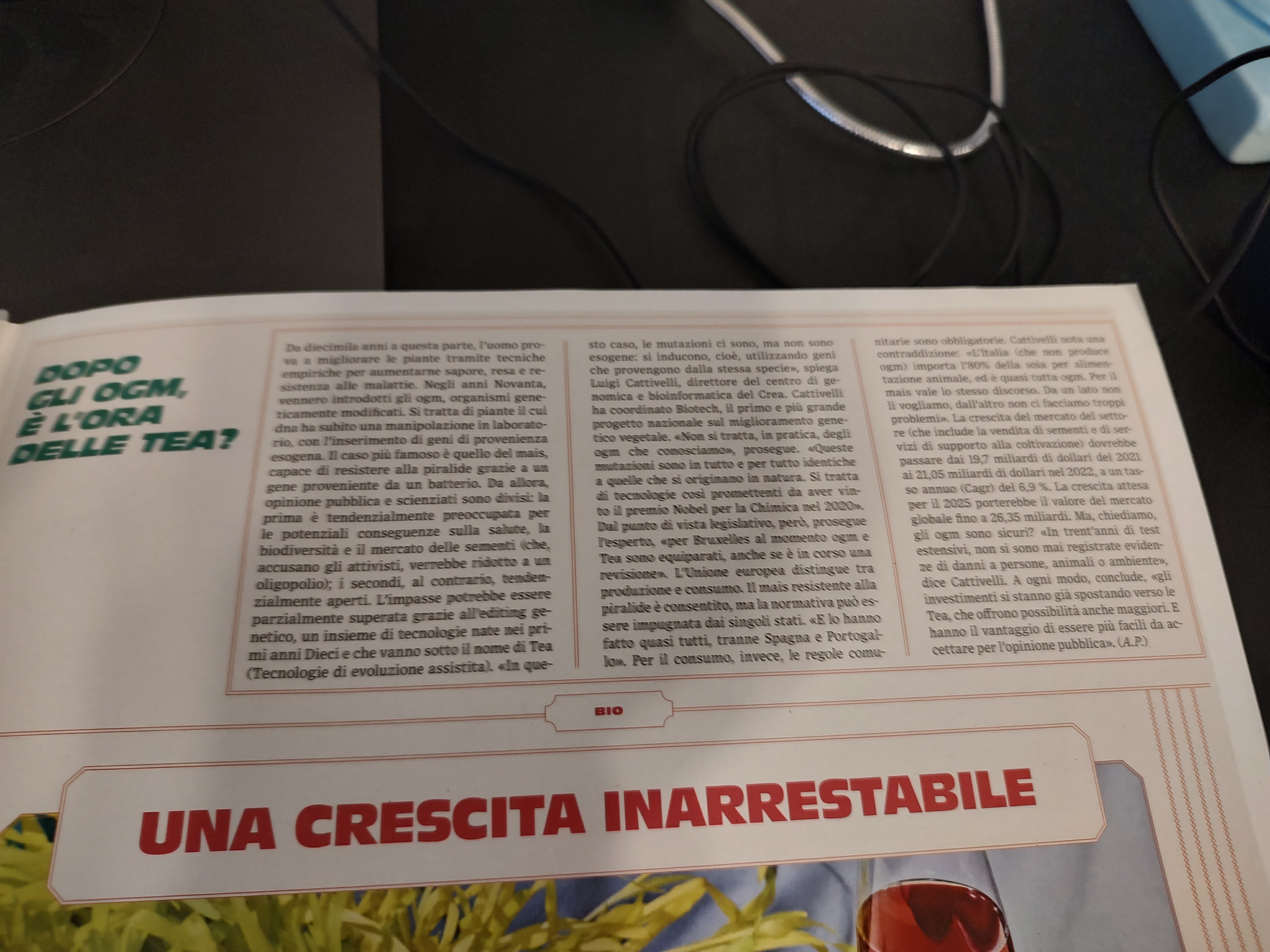 Luigi Cattivelli, direttore del CREA Genomica e Bioinformatica, intervistato dalla rivista "Wired", parla dei vantaggi delle Tecnologie di Evoluzione Assistita (TEA) che con l'editing genetico provocano mutazioni endogene nella pianta, utilizzando geni che provengono dalla stessa specie, pertanto non sono equiparabili agli OGM, che inducono mutazioni esogene. Cattivelli, poi, ribadisce l'urgenza del via libera legislativo della Ue alla sperimentazione in campo.
