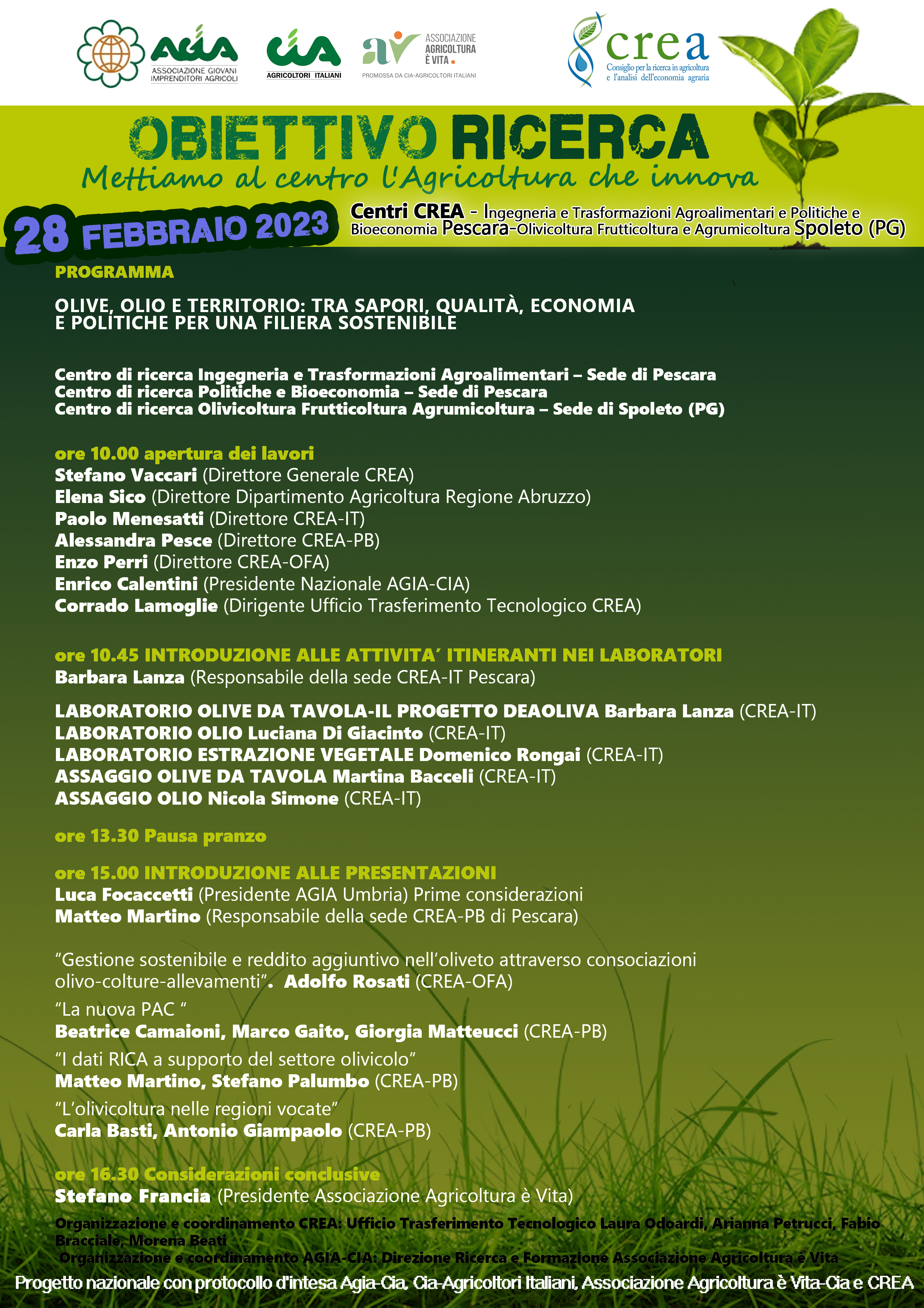 L’evento, dal titolo “Olive, olio e territorio: tra sapori, qualità, economia e politiche per una filiera sostenibile”, rappresenta il punto di raccordo delle diverse competenze del CREA nel settore olivicolo per il migliore supporto alle imprese, come testimoniato dalla presenza dei Direttori dei tre Centri di ricerca coinvolti.