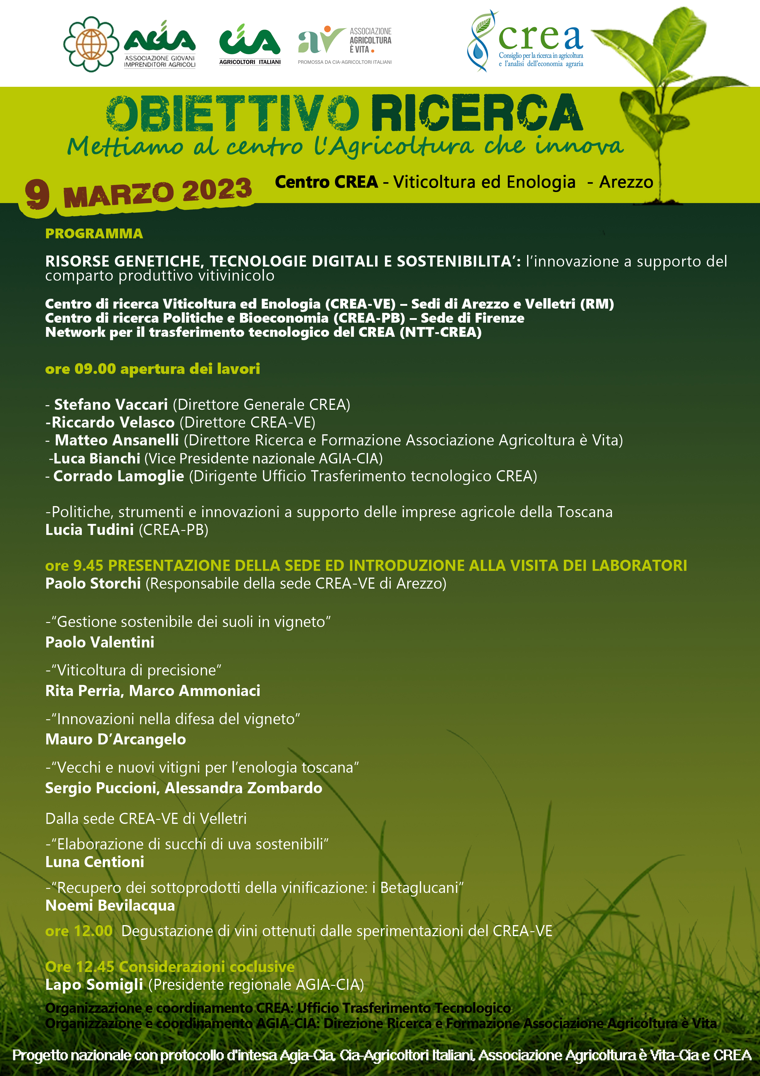 L’incontro si svolgerà presso la sede del CREA - Centro di ricerca Viticoltura ed Enologia di Arezzo, Viale Santa Margherita, 80.
